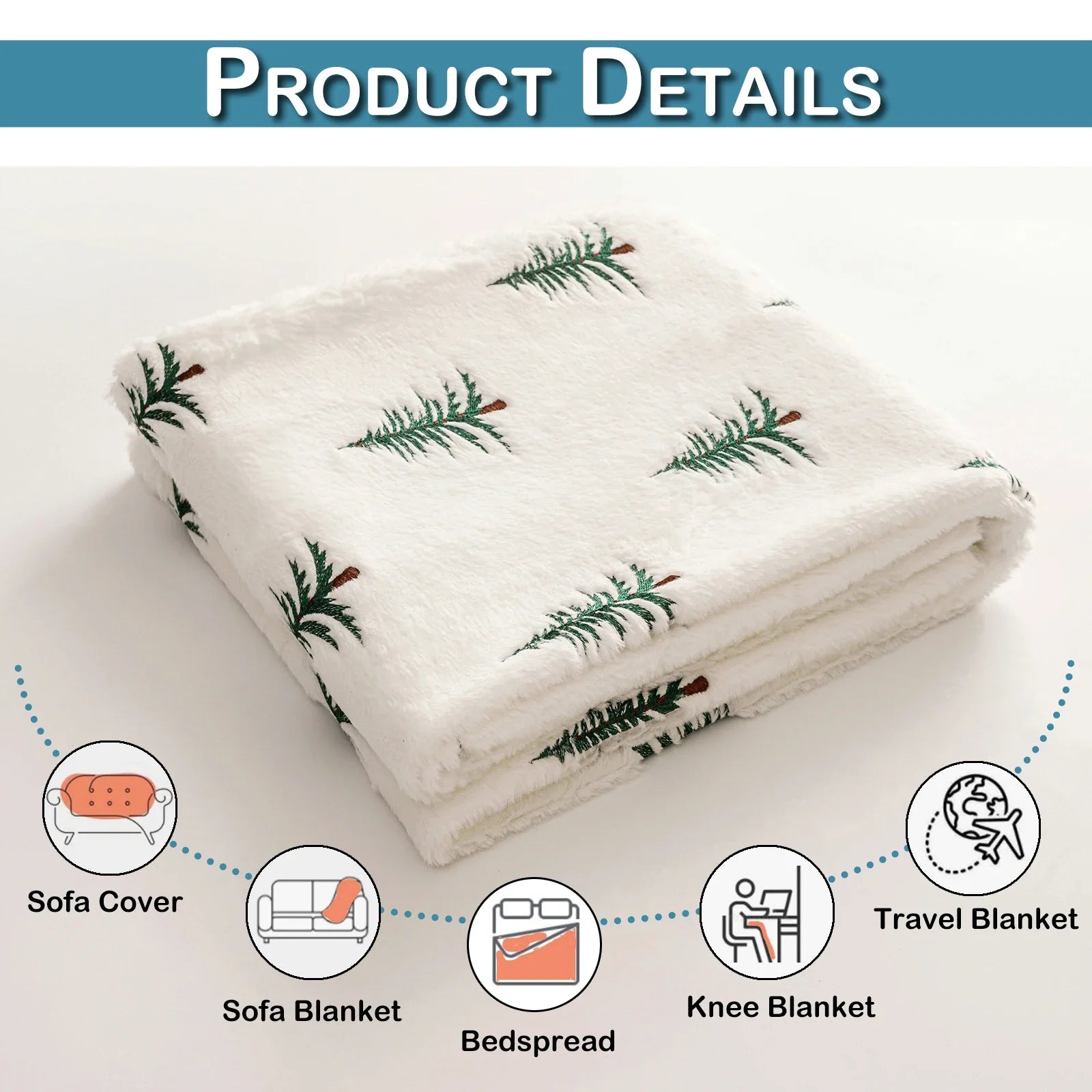 Soft Faux Fur Blanket Reversible Fuzzy Long Hair Shaggy Blanket Fluffy Plush Fleece Christmas Tree Embroidered Throw Blanket