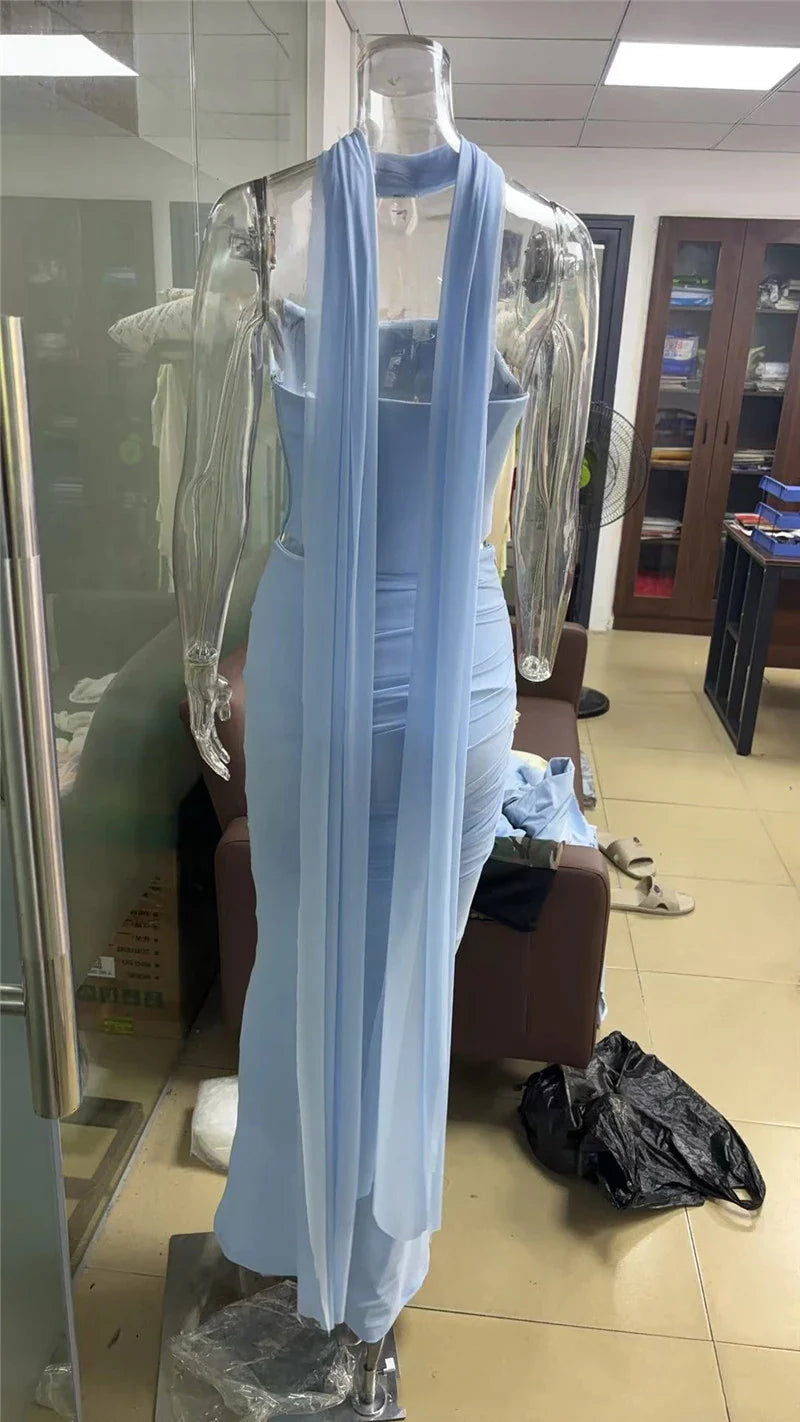 Solid Ruched Corset Top And Body-con Maxi Dress With Scarf Set