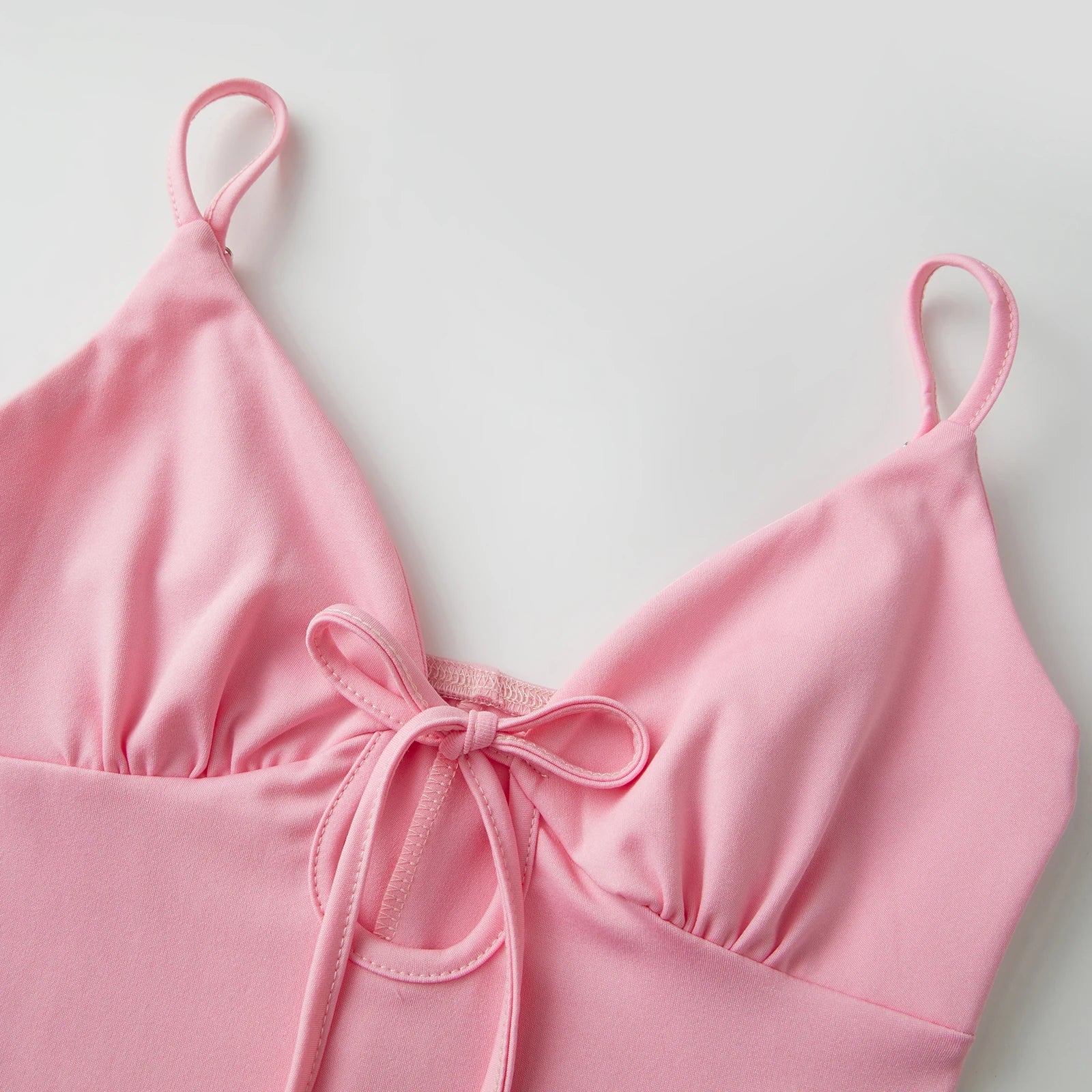 Solid Sleeveless Tie up V-Neck Mini Dress