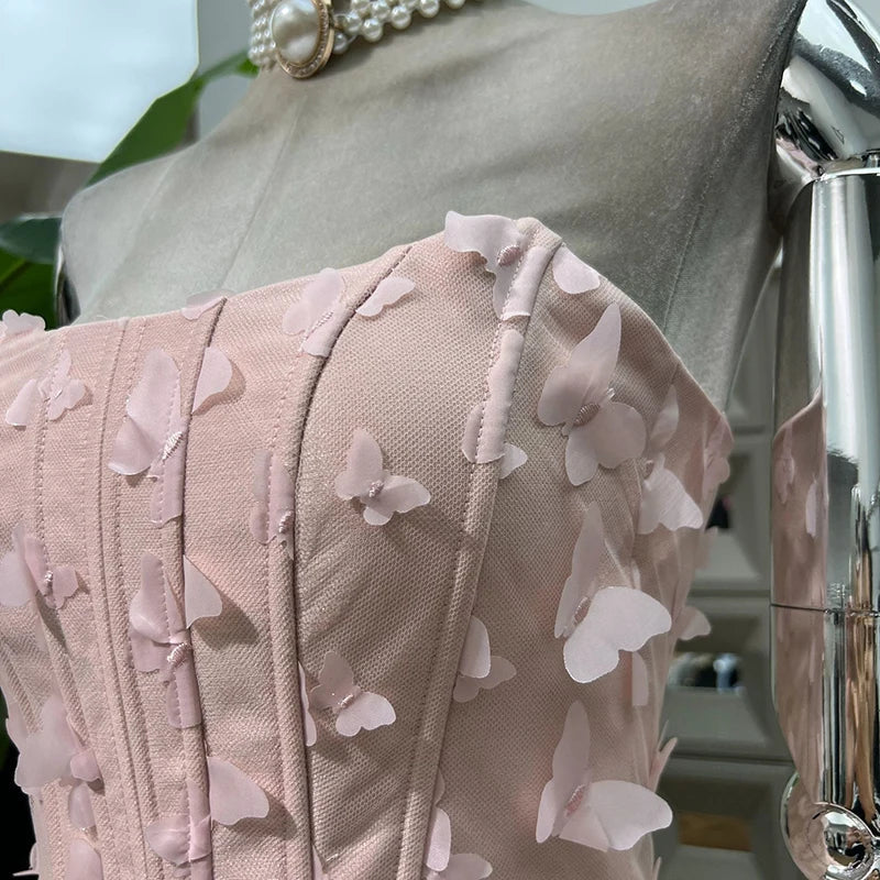 Make a show-stopping entrance in our Pink Strapless Tiered Ruffle Mini Dress. This exquisite mini dress for women features a captivating strapless neckline and a fitted bodice that elegantly sculpts the figure. The highlight is its voluminous. multi-tiered ruffled skirt in a delicate light pink hue. creating a playful yet glamorous silhouette. Also available in classic black. this one-piece dress is crafted from a solid cotton blend. designed for Summer and exudes a striking. high-fashion aesthetic. perfect for parties and special events.