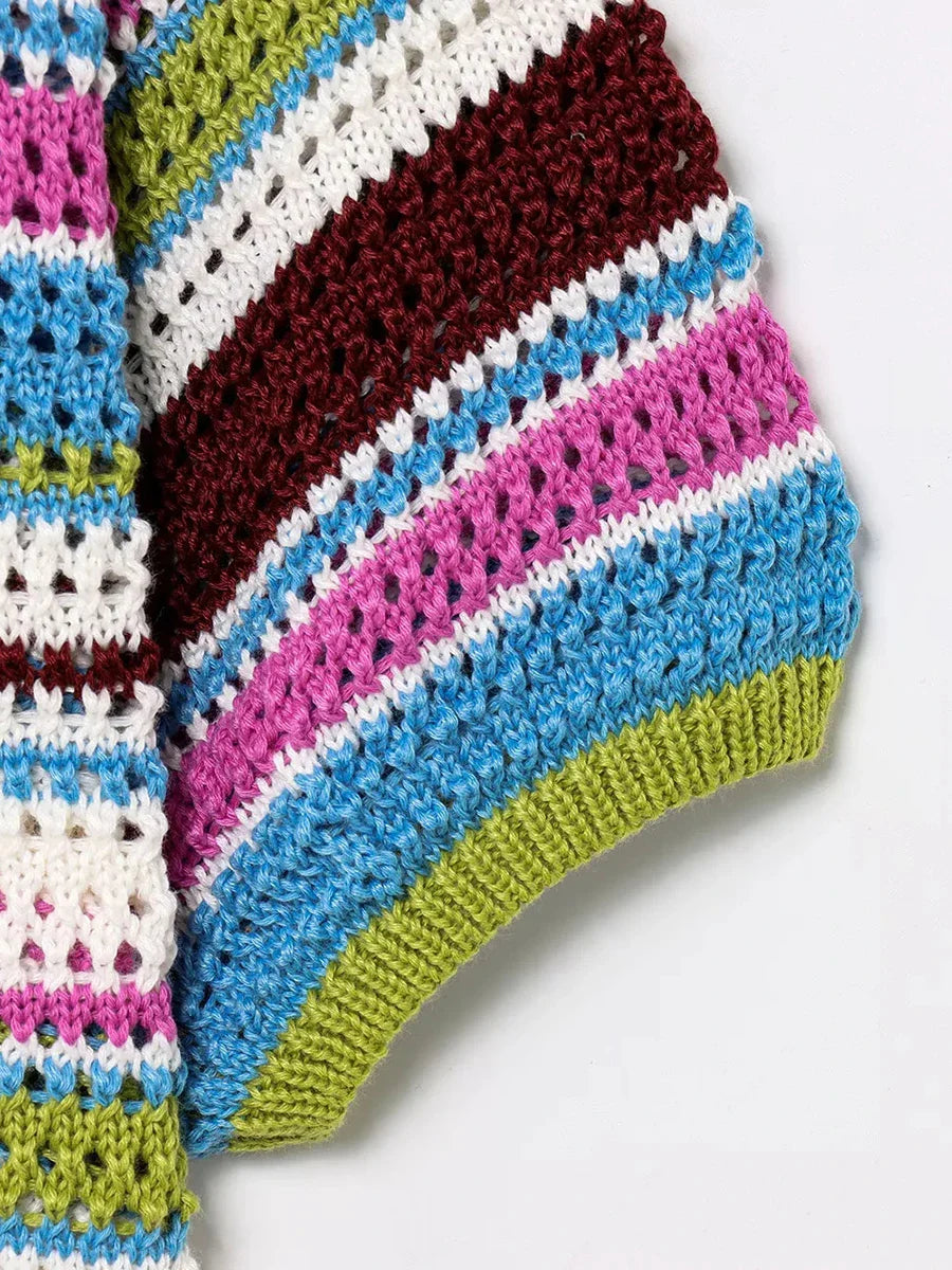 Stripe Colourful Collar Buttoned Shirt And Shorts Set