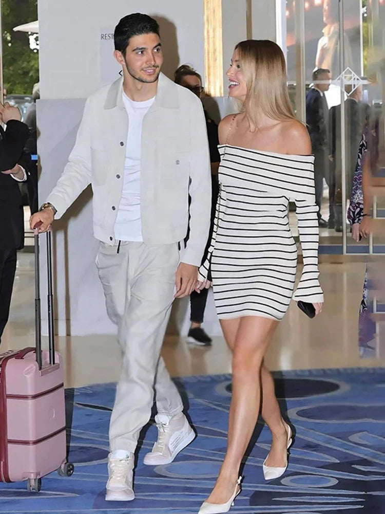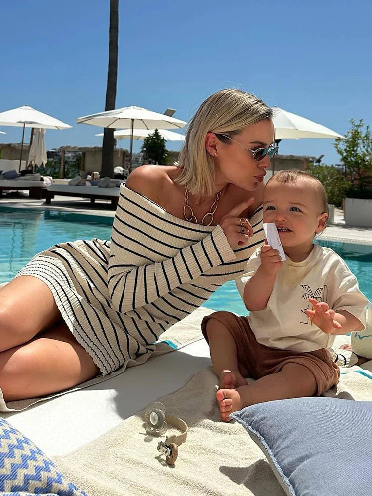 Striped Long Sleeve Knit Off-Shoulder Mini Dress