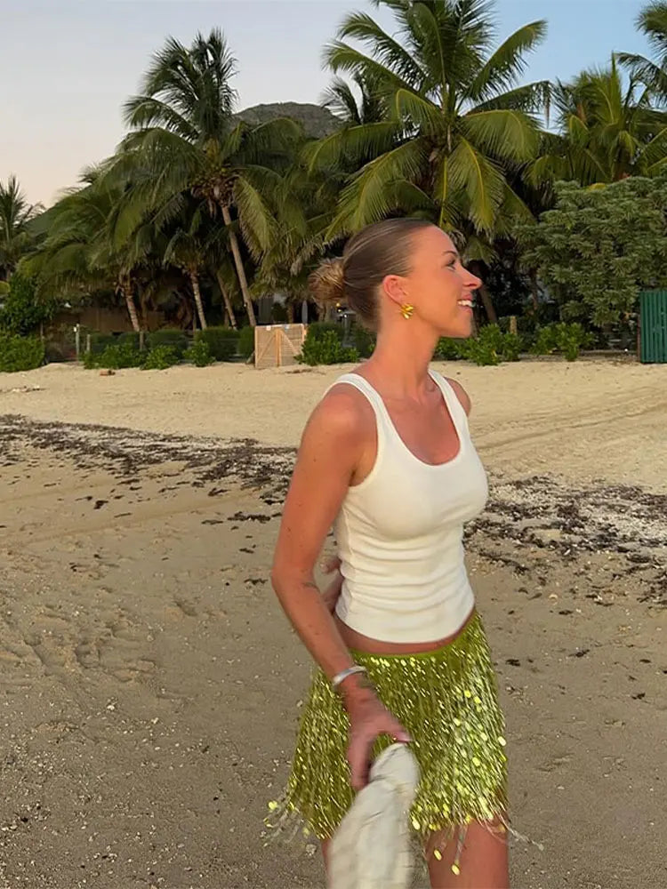 Tassel Sequin Crop Top & Skirt Set �Mini Style