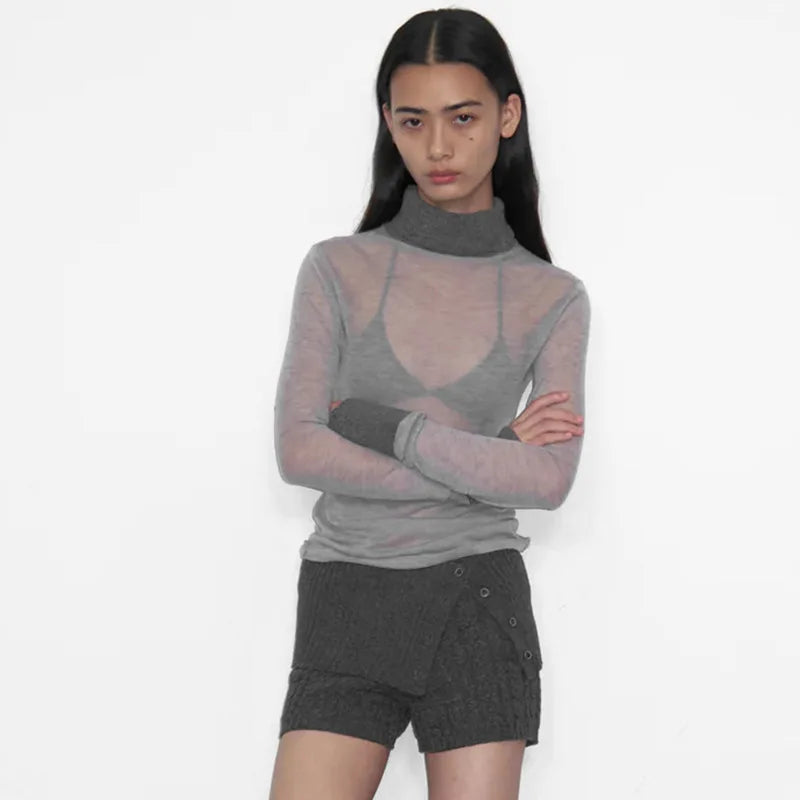 Turtleneck See Through Long Sleeve Top