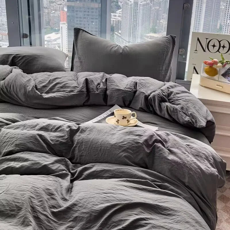 Washed Cotton Bedding Set.Bed Sheet Set. Linen Feel. Super Soft. Comfortable. 4-Piece Duvet Cover Set. Durable and Easy Care