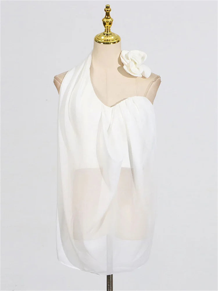 White 3d Floral Off-Shoulder Drape Top