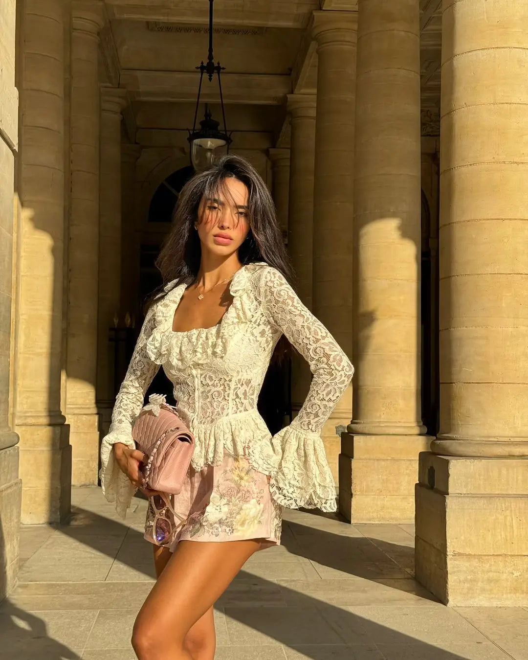 White Lace Ruffle Sleeve Top