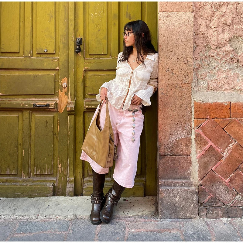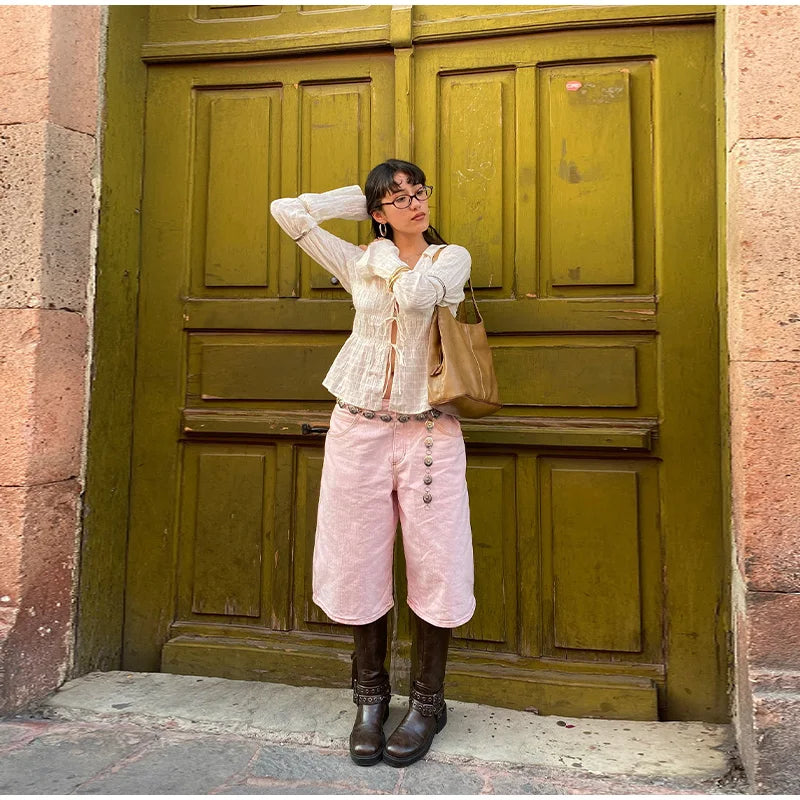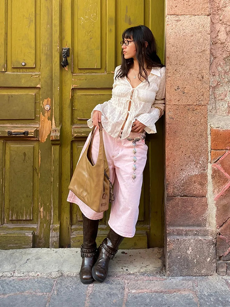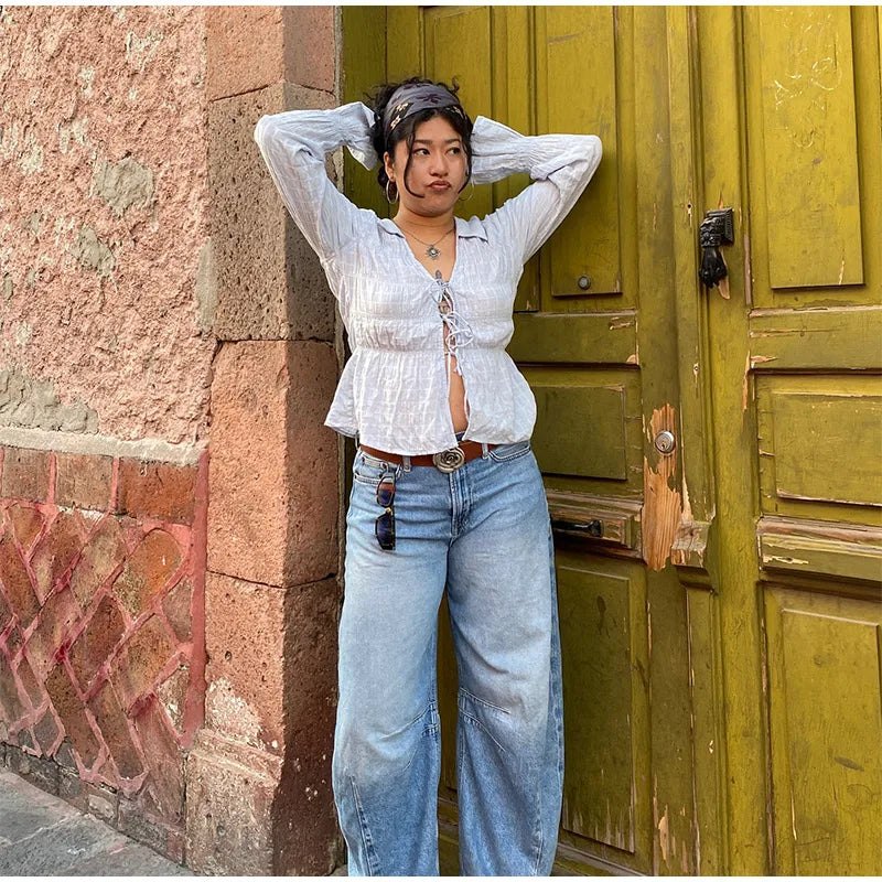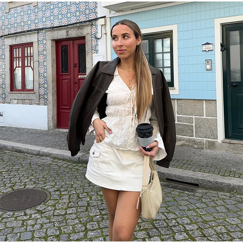 White Ruched Tie Up Long Sleeve Top
