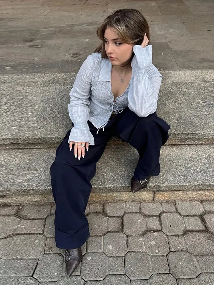Model Number: Solid Long Sleeve Blouse For Women
